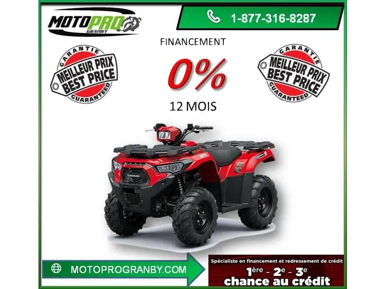 Experience the power and precision of the KVF450 BRUTE FORCE450 KVF 450 EPS POWER STEERING in stunning Red. Located at MotoPro Granby, we are proud to offer this exceptional ATV.