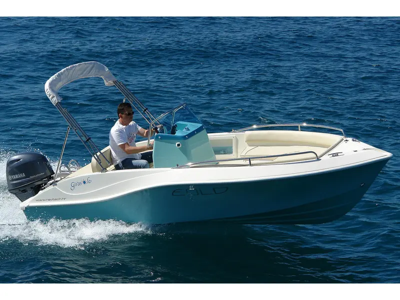 Slim Line, aquamarine hull, compact console and large forepeak. Girasole was created in honor of the 40th anniversary of Eolo brand, looks like an open compact, with a young and sparkling spirit. Presented with engines up to 70 hp, Girasole is the perfect boat for young people and families, who want to enjoy days on the water.