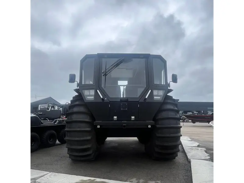- Unique ultra-low pressure tires - The tires are connected to each other and can be inflated and deflated at the touch of a button. This unique technology allows SHERP UTV to overcome the most fiddicult obstacles. The elasticity of the tires makes them less susceptible to damage, and if a puncture is unavoidable, it can be easily repaires even in the field.