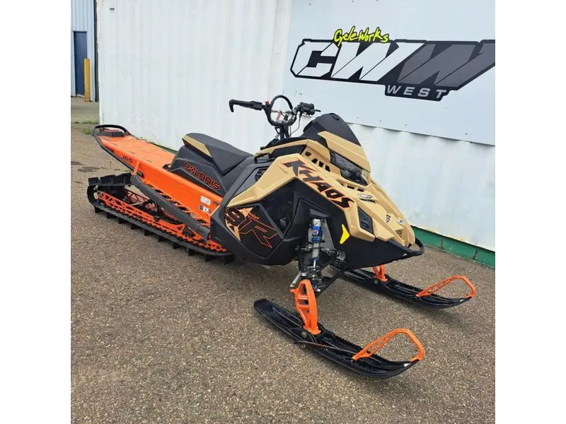 2024 Polaris® Patriot 9R RMK Khaos Slash 165 Gloss Black/Military Tan/Orange BurstUNMATCHED FUN FACTOR IN ANY TERRAIN.The RMK Khaos Slash delivers a wild child attitude, dynamic and agile performance.Features may include:DYNAMIC DEEP SNOW PERFORMANCEThe RMK Khaos Slash delivers transfer and traction for a wild ride. The tapered low drag tunnel and Polaris-exclusive tracks lift the lightweight chassis on top of the snow, and the low-inertia QD2 drive system creates industry-leading response. Plus, the all-new Series 9 325 Track is the newest track offering and puts the power to the snow quicker to deliver quicker acceleration and instantaneous lift for mountain riding in deep snow.Rider First Design. Effortless Control.The Matryx RMK platform is a backcountry rider's dream. The narrow seat, tank and console provide improved rider connection to the sled while the narrow bodywork enables more agility and less drag in the snow.Float. And Fly.The RMK Khaos Rear Suspension features geometry that provides transfer and traction for light, playful handling, along with the best response and control in all riding zones. Available in 146, 155 and 165 lengths.Choose Your Power.With four engine choices from the Patriot Family. Choose a smooth and powerful 650, benchmark in performance 850, or the SnowCheck-Exclusive Factory Mods… the ultra-responsive Patriot 9R or turbocharged Patriot Boost.PURPOSE-BUILT RIDE & HANDLING FOR ALL-MOUNTAINWhen we build a sled, we build it to be the best sled for each unique riding style. Not simply a different sticker or name. Every part is scrutinized to deliver what you need as a rider.Ultimate ControlThe RMK Matryx Slash platform features a next-level rider interface and slashed, tapered tunnel. Combined they deliver minimized drag and maximum control.Lightning-Fast Response. Puts the Power Down.QuickDrive (QD) is the lightest drive system in the industry and produces the lowest inertia for optimum response. The all-new 325 Series 9 Track features a 3.5” pitch track with 3.25” tall lugs for ultra deep snow riding. The track features an aggressive Polaris-exclusive lug design for instant traction and forward drive in deep snow.Precise Steering. Confidence Inspiring.The RMK React Suspension lets riders effortlessly initiate sidehills and experience less fatigue with the most predictable ride. It includes a 36"-38" stance, a sway bar designed for predictable handling, and forged a-arms and spindles optimized for strength and durability.Big Time Shocks for Big Time TerrainUltra-premium Walker Evans Racing® Hi-Lo Shocks are the best of the best in extreme mountain conditions. They feature remote reservoirs for increased oil capacity to provide all-day performance and durability, along with high and low-speed compression adjustment to dial in the ride.