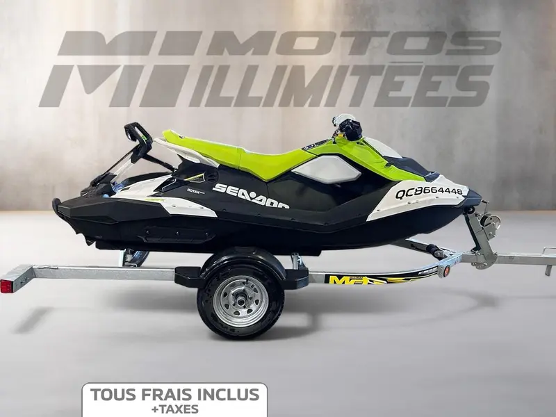 Just arrived at Motos Illimitées: a 2023 Sea-Doo/BRP Spark 3up HO IBR in a striking Yellow & Black finish. This unit is used with only 12 km of usage—an excellent opportunity to get on the water with confidence and value.